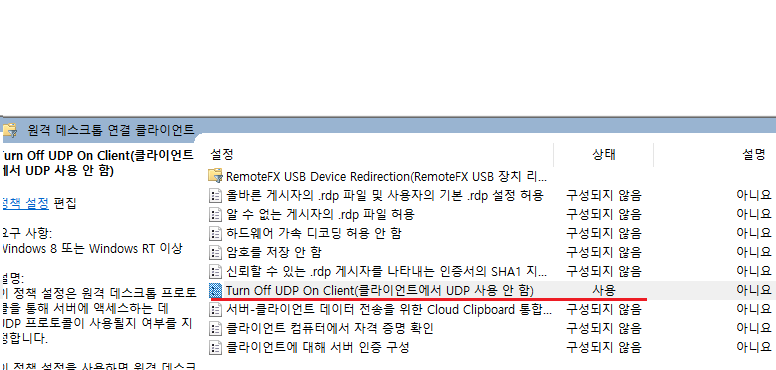 Turn Off UDP On Client 사용으로 변경하면 된다