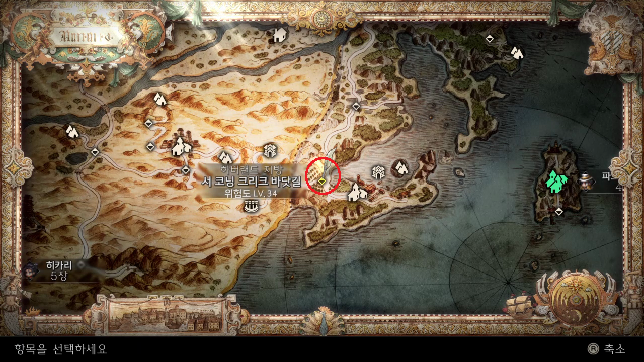 서 코닝 크리크 바닷길에 가서 퀘스트를 받는다