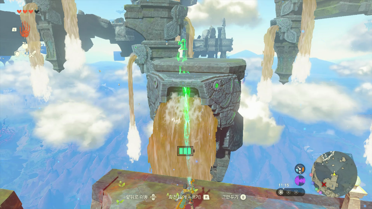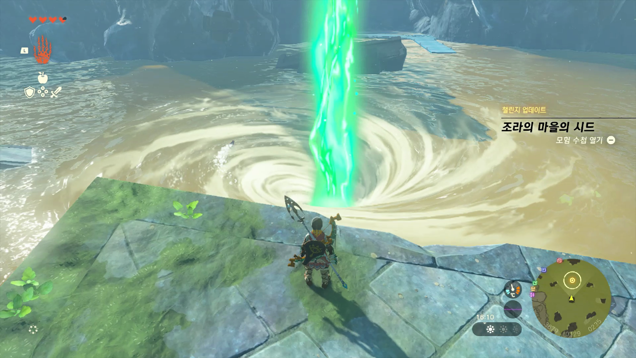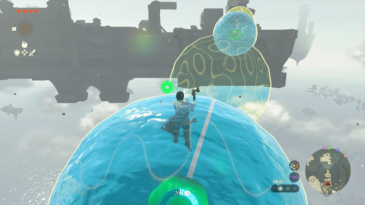 물의신전에서 4개 퍼즐을 완성해야 한다 첫번째 왼쪽 아래로 가면 공이 있다 울트라 핸드로 공을 들어서 표시된 곳까지 들고 간다 진흙이 있는데 물로 씻어 낸다 씻어내면 물방울이 나오는데 여