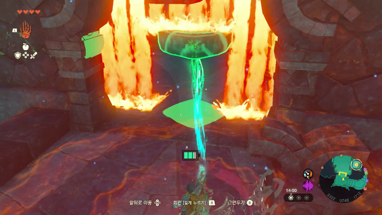 부유석을 가지고 가서 불기둥 막고 들어갔다