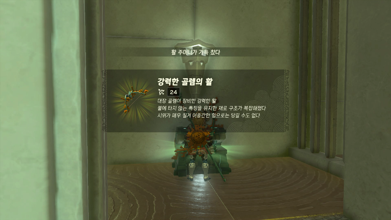 들고 와서 끼어넣으면 강력한 골렘의 활을 얻는다