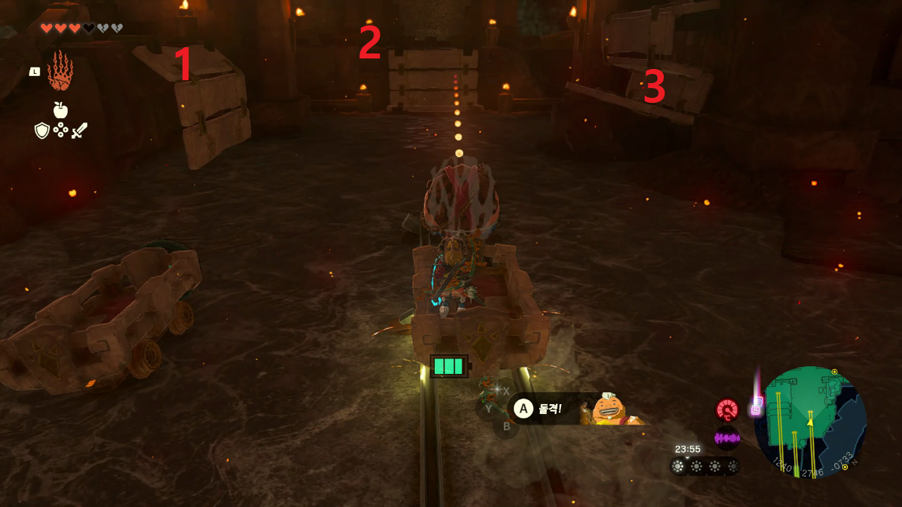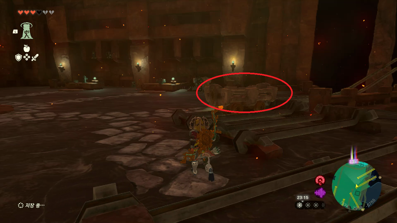광차를 타고 앞으로 가면 화염의 신전 2층에 도착한다