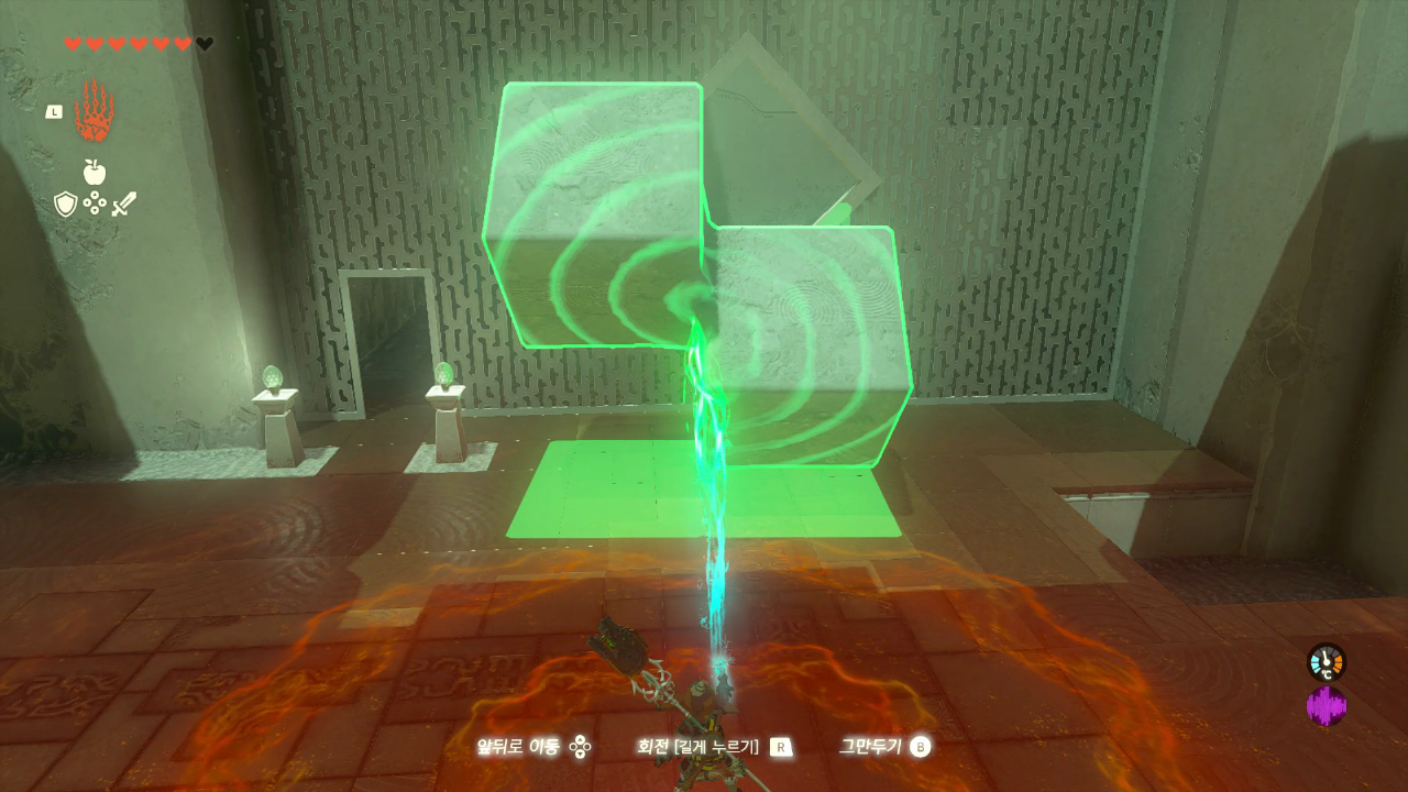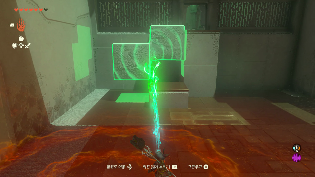 왼쪽으로 가서 블록을 X 모양으로 만들어서 빼낸다