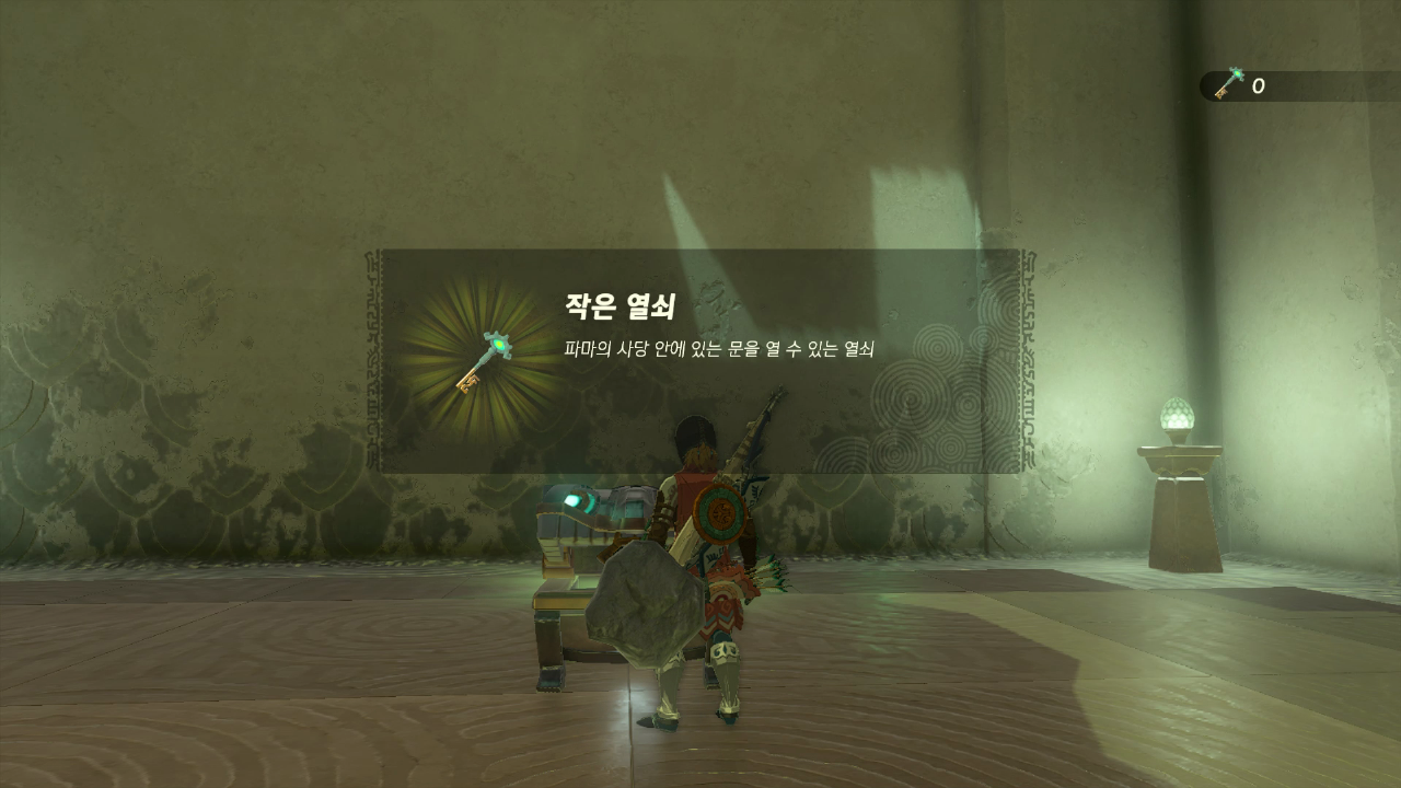 선풍기를 작동시키고 문 왼쪽에 모래를 날리면 상자에서 열쇠를 얻을 수 있다