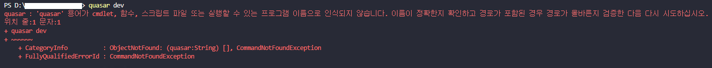 터미널에서 quasar dev 입력 했더니 오류가 난다