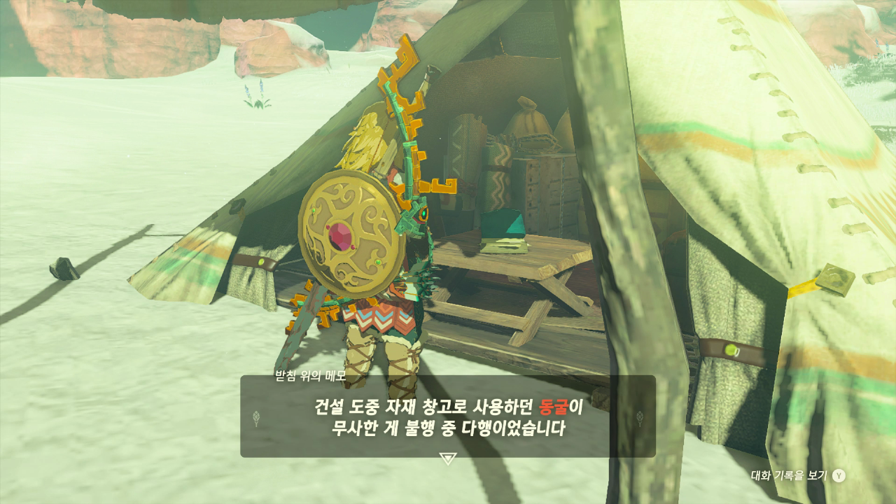 근처 텐트에서 메모를 읽어보니 눈에 파묻혀 있다고 한다