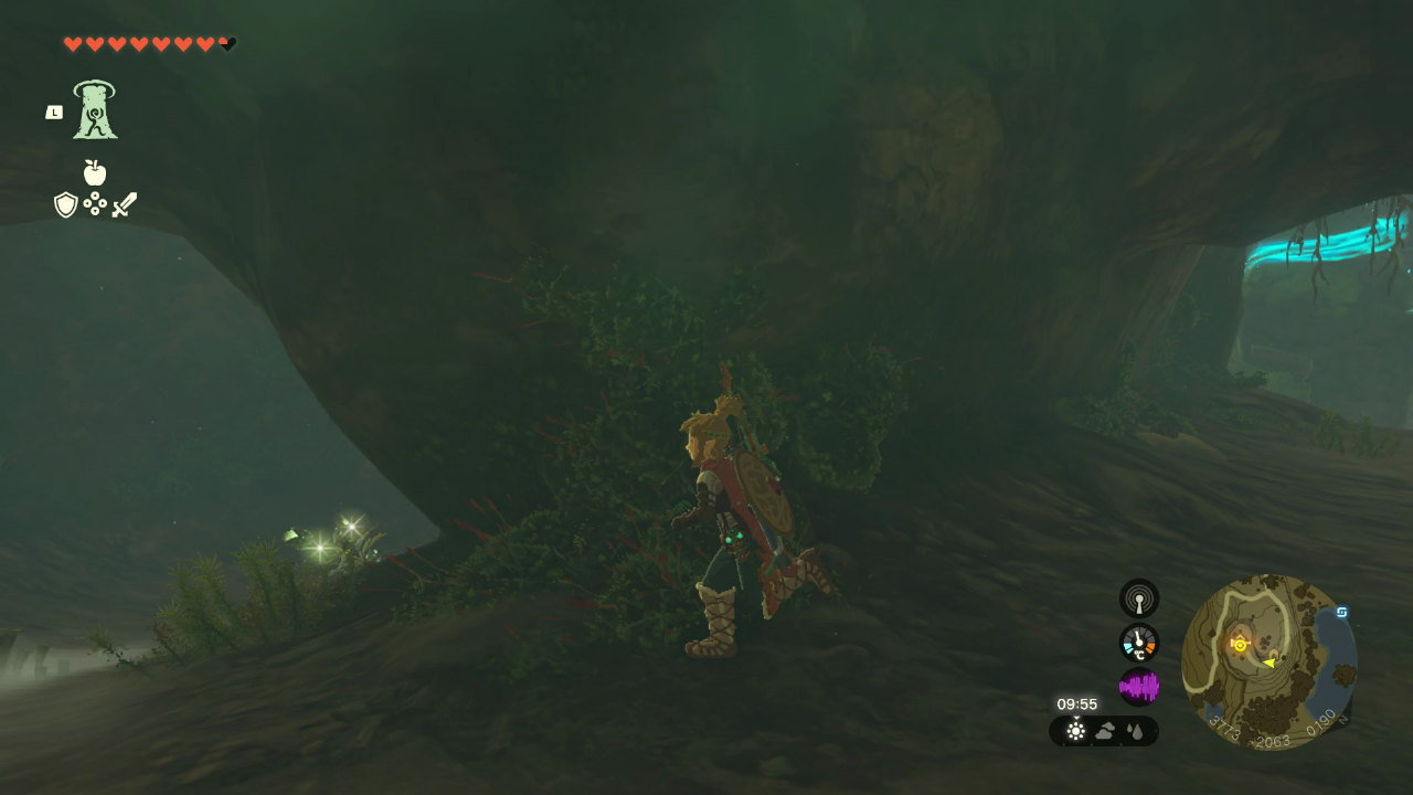 감시요새에 있는 조슈아와 대화를 한다 대화를 하면 지저에 가라고 하는데 거대한 조명꽃 씨앗 x10, 나무화살 x10를 준다 지도 감시 요새 아래에 하이랄 평원 조망대로 가서 지하로 내려간다 지하
