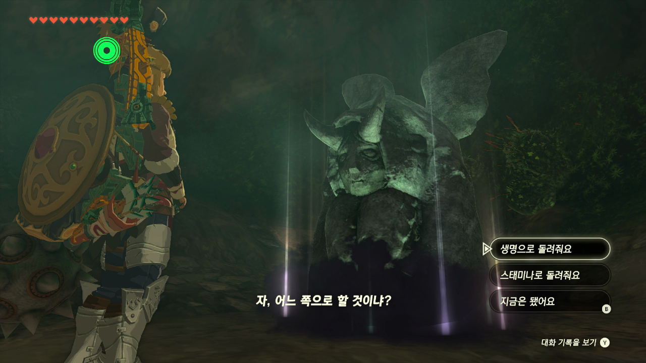 내가 갖고 있는 생명, 스태미나를 하나 소진하고 루피를 주면 다른 것으로 올릴 수 있다