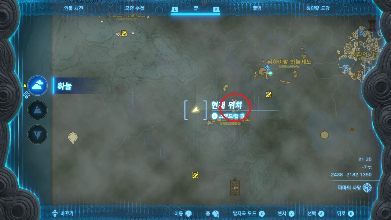동겔드 하늘제도에서 표시한 위치로 가서 아래를 내려다보면 안경 바위가 웃는 게 보인다