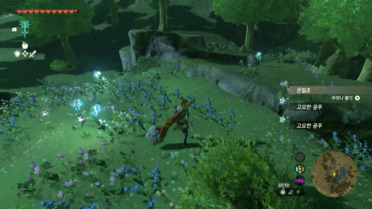 지도 루틸호 오른쪽에 가면 은밀초, 고요한 공주가 많이 있다