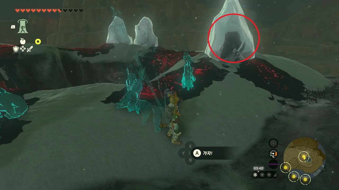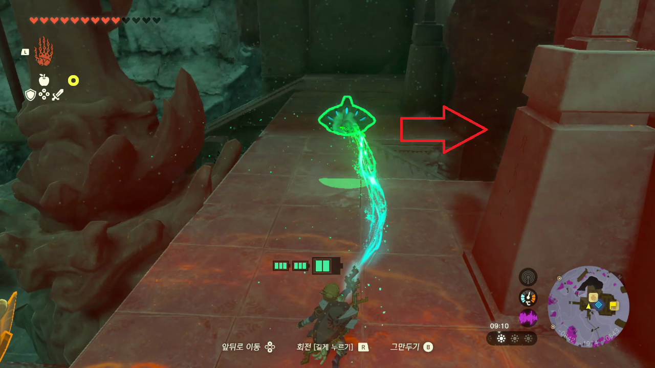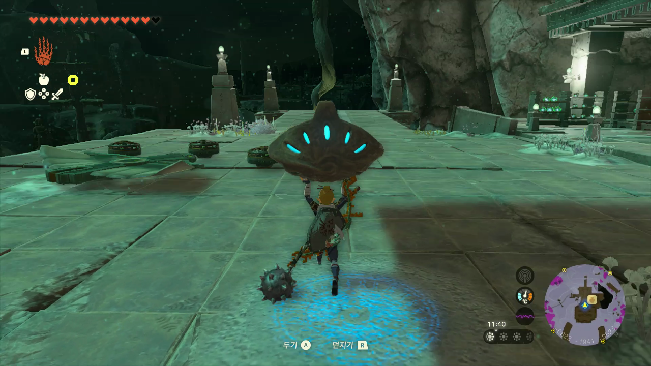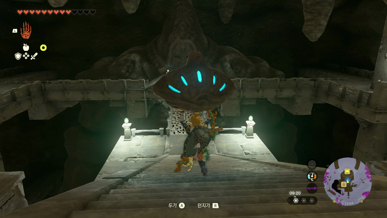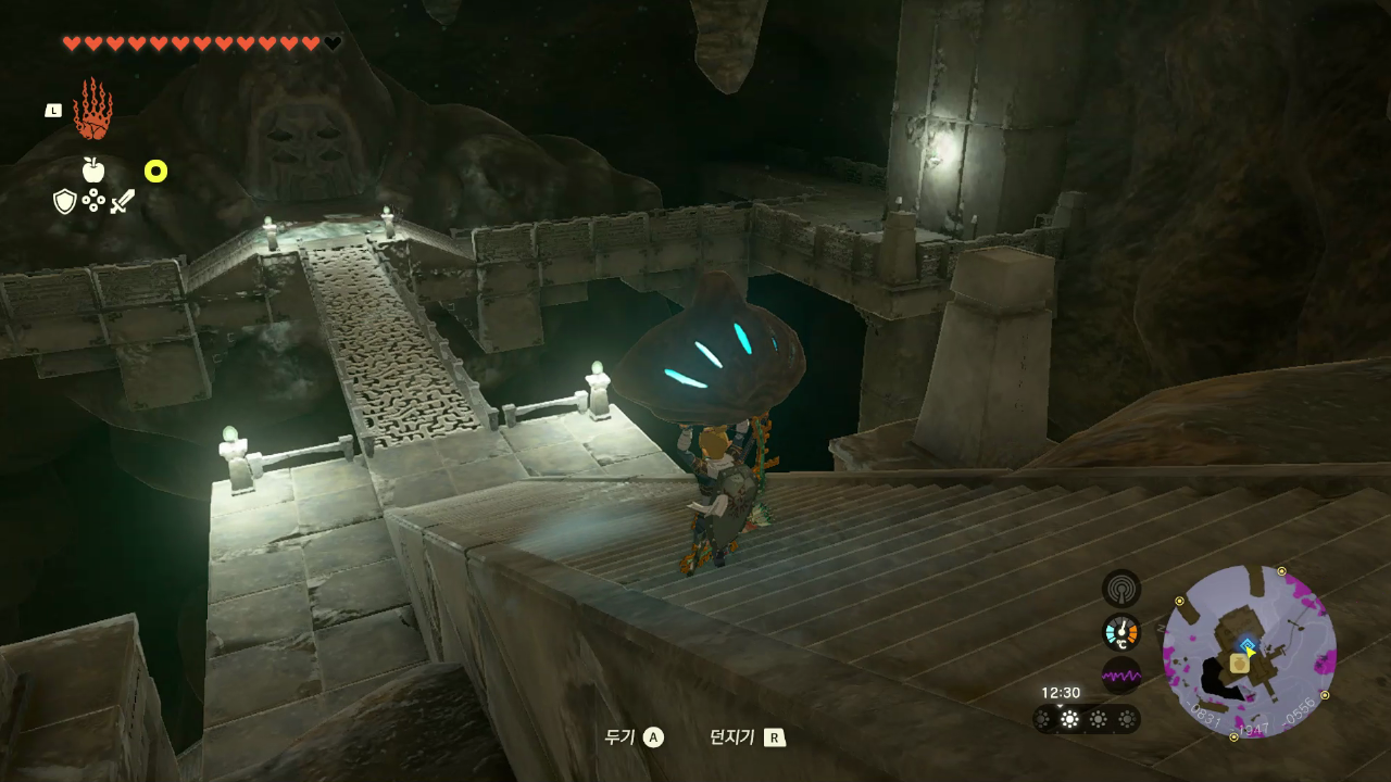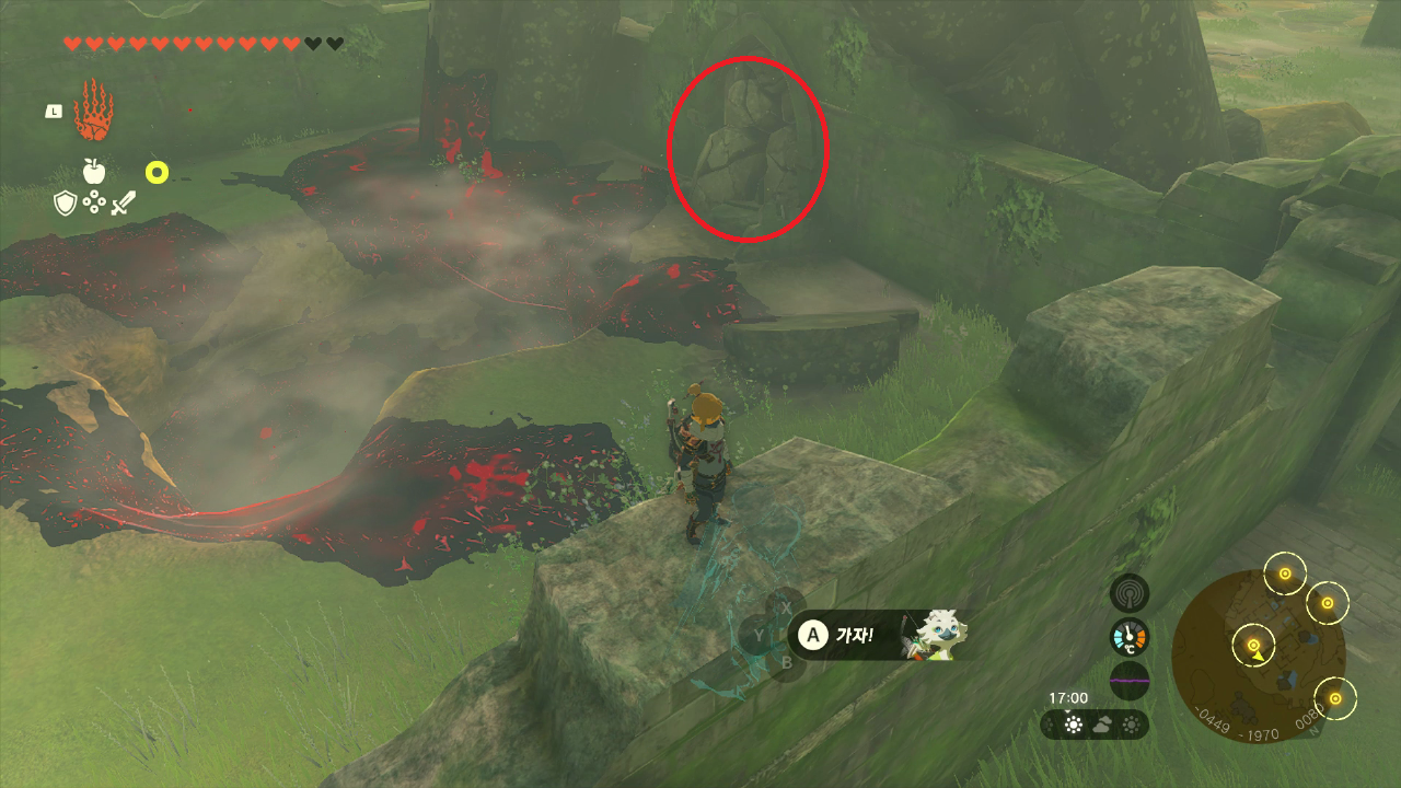 표시된 돌을 부수면 눈깔 모양 돌이 나오는데 깊은 굴 안으로 던진다