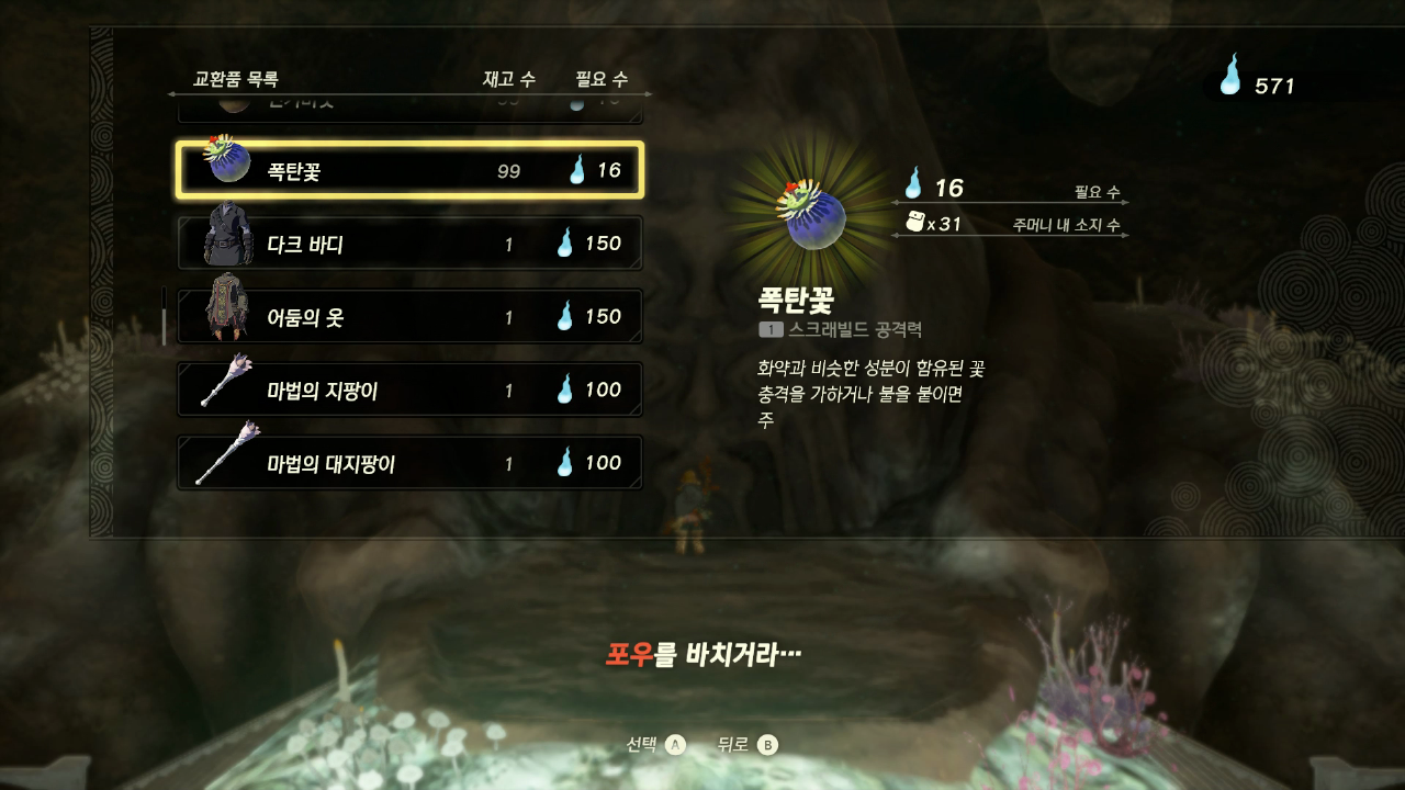 지하에서 모은 포우를 사용해서 아이템으로 교환이 가능하다