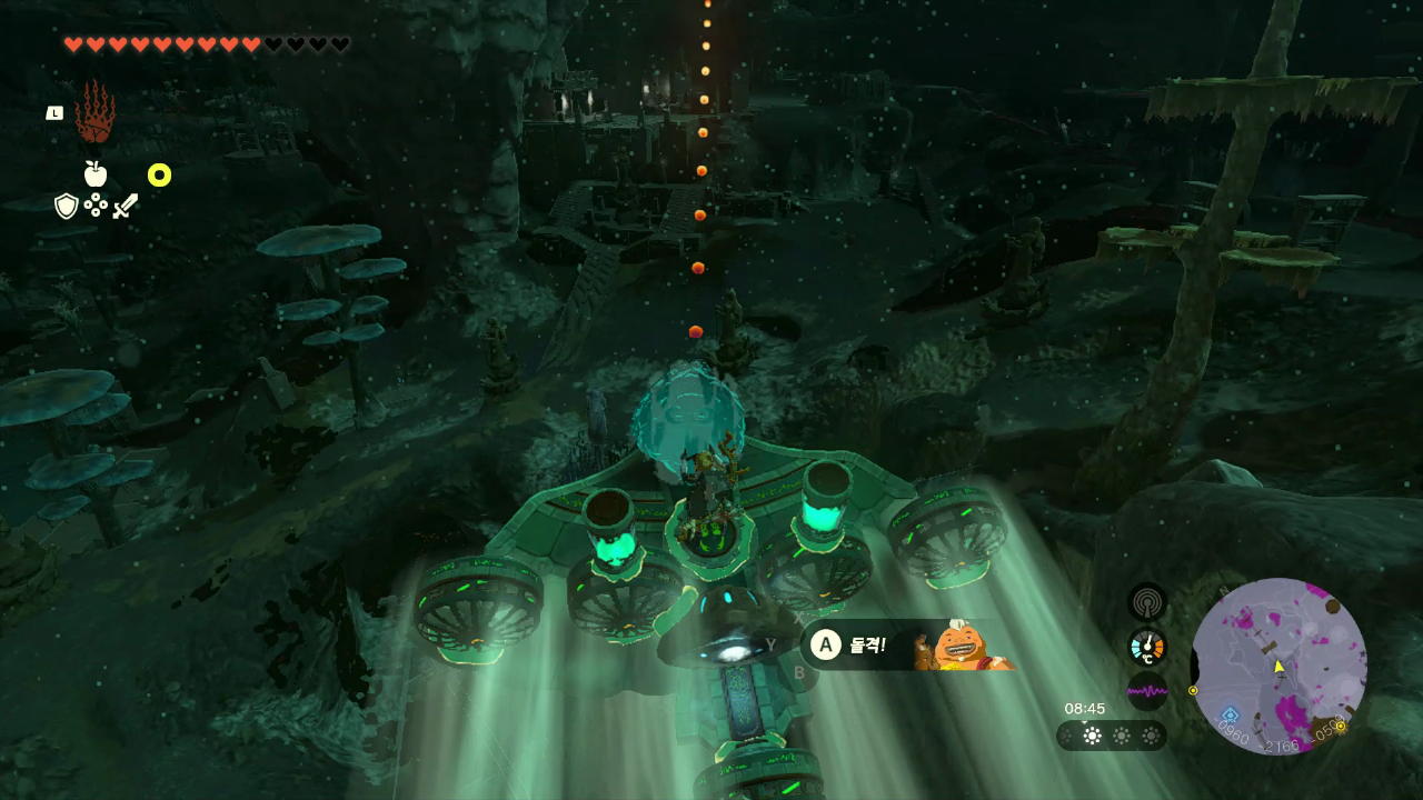 굴 안으로 눈깔 모양 돌을 던지고 아래로 내려가면 엘리베이터가 있으니 타고 올라간다