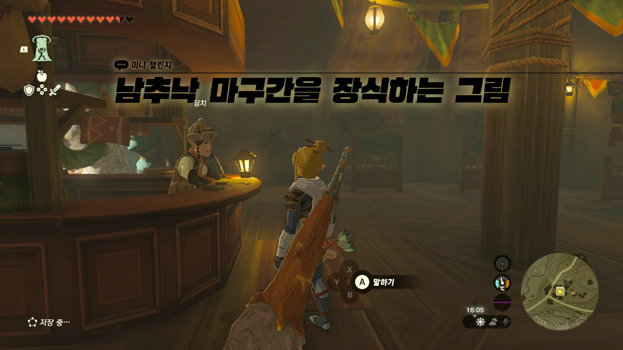 동추낙 마구간 위에 가면 퀘스트를 받을 수 있다 대화를 하면 퀘스트를 받는데 지도에 표시된 장소로 간다 첫 번째 - 올딘의 대화석 지도에 표시된 장소로 가면 거대한 화석이 있다 화석 머리 쪽 아래에 보면 바위가 있다. 바위를 깨면 동그란 바위가 나온다 대화를 하면 눈알 화석을 찾아야 하는데 위에서 찾은 게 눈알 화석이다 찾은 눈알을 맞춰서 넣어주면 된다 대화를 하면 퀘스트 완료 보상 보라 루피(+50 루피) 두번째 - 헤브라의 대화석 지도에 표시된 곳으로 가면 동굴이 있는데 동굴 안으로 들어간다 동굴 안에 들어가서 대화를 하면 손가락뼈랑 등뼈가 빠져 있다고 한다 왼쪽에 손가락, 오른쪽은 등뼈가 있다 바위를 부수고 뼈를 뺀다 얼음을 녹이고 뼈를 빼면 된다 보상 보라색 루피(+50루피) 세 번째 - 겔드의 ..