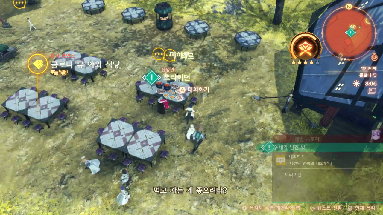 카덴시아 지방 전도 > 콜로니 뮤 야외 식당으로 가서 트라이던 대화를 한다