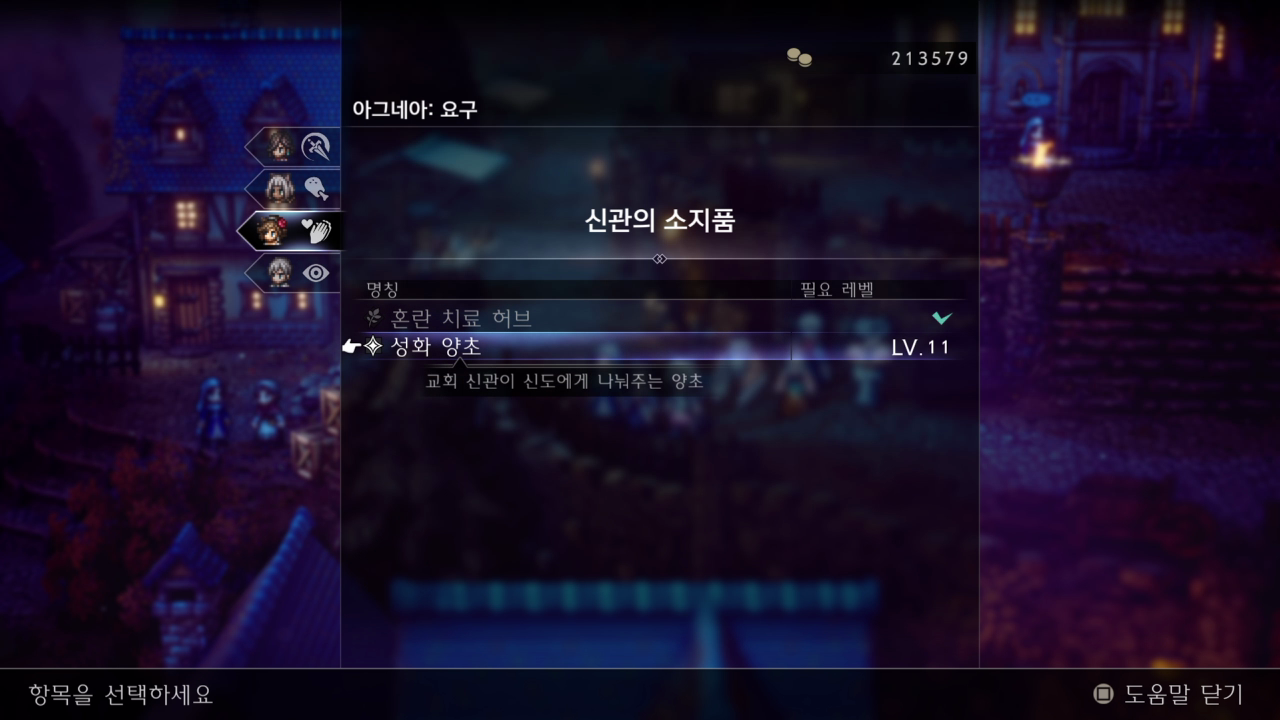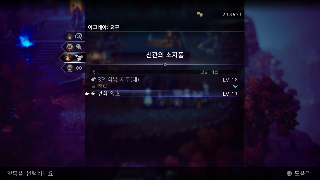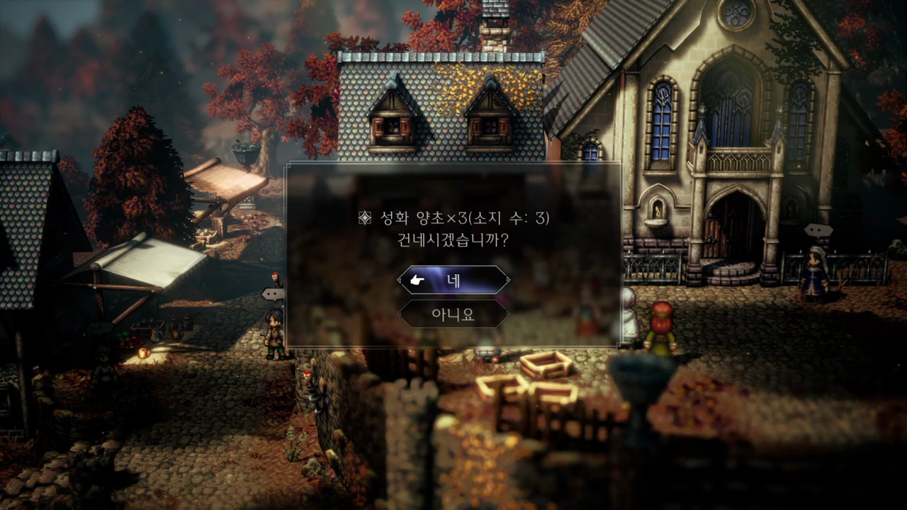 밤시간으로 변경하면 신관이 나타나는데 소지품에서 성화 양초를 얻는다